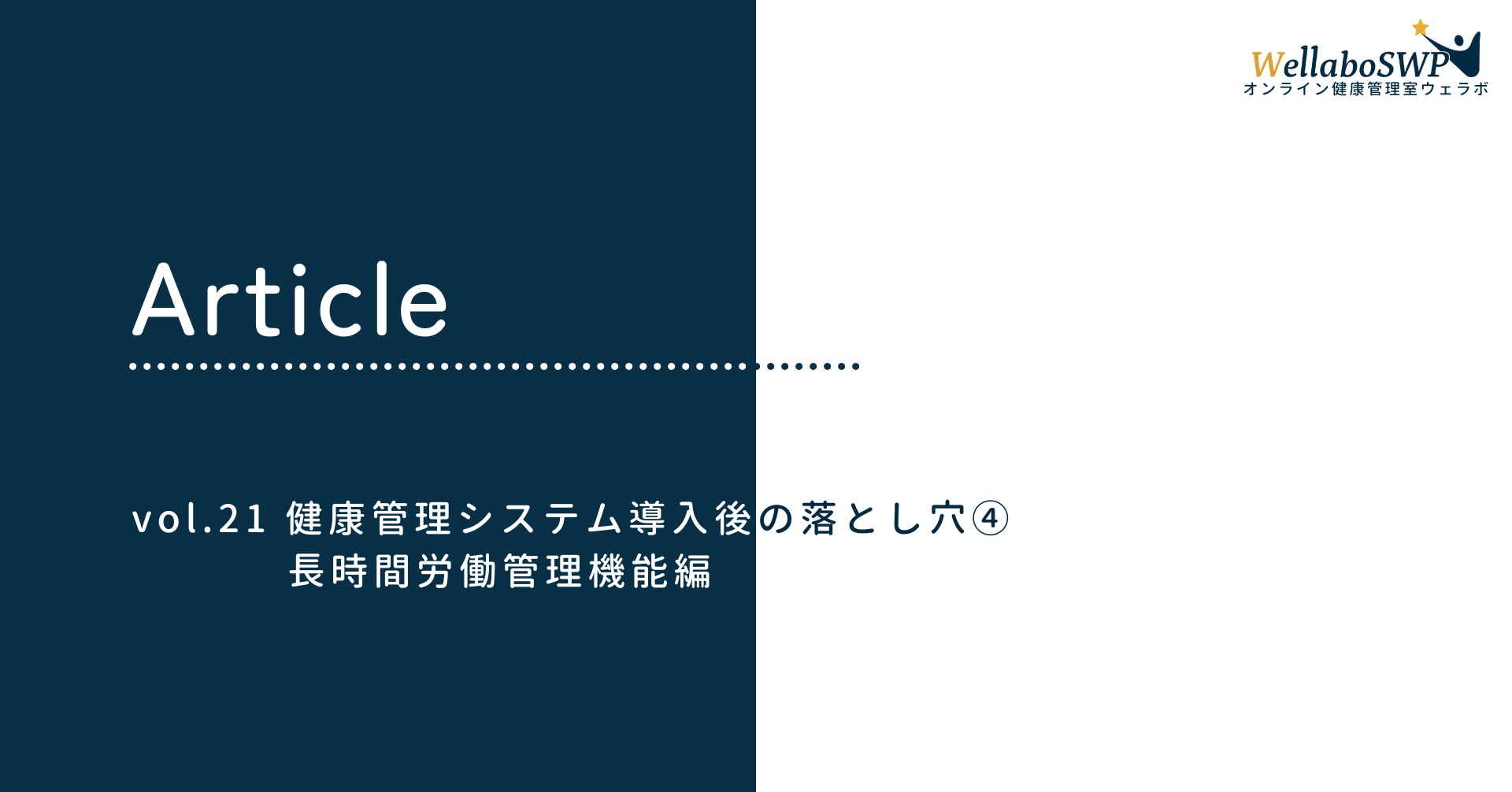 「機能する産業保健の提供」をコンセプトとして、健康管理、健康経営を一気通貫して支えてきたメディヴァ保健事業部産業保健チームの経験やノウハウをご紹介している。WellaboSWP編集チームは、主にコンサルタントと産業医・保健師などの専門職で構成されている。株式会社メディヴァの健康経営推進チームに参画している者も所属している。