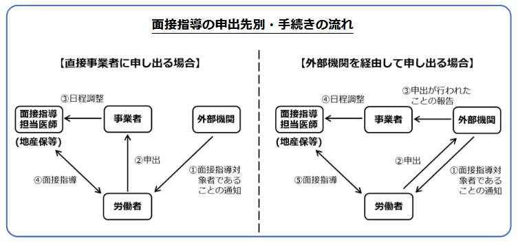 さらに、委託先の外部機関が、面接指導を担当する医師(地産保等)との日程調整を担うことも考えられます。具体的な手続き等については、外部機関が作成する「サービス内容事前説明書」により確認を行い、外部機関との間で決めるようにしてください。